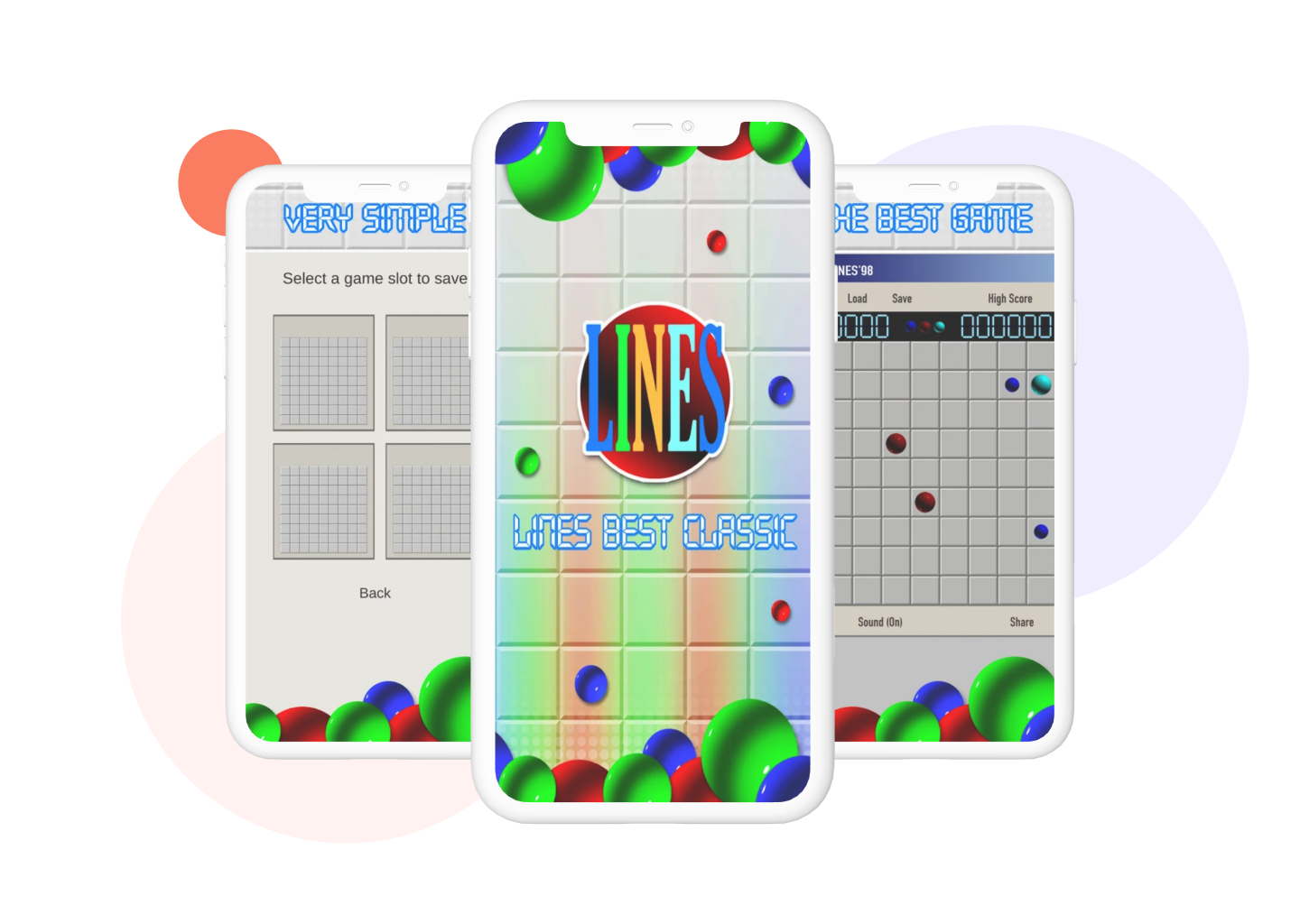 Lines Best Classic is a classical puzzle game (like Pikachu, Onet game) that requires intelligence and strategy but simple and funny to play. The goal is to arrange 5 or more balls of the same color in straight lines (vertical, horizontal or across) and the row will disappear from the board. Get a highest score as you can!